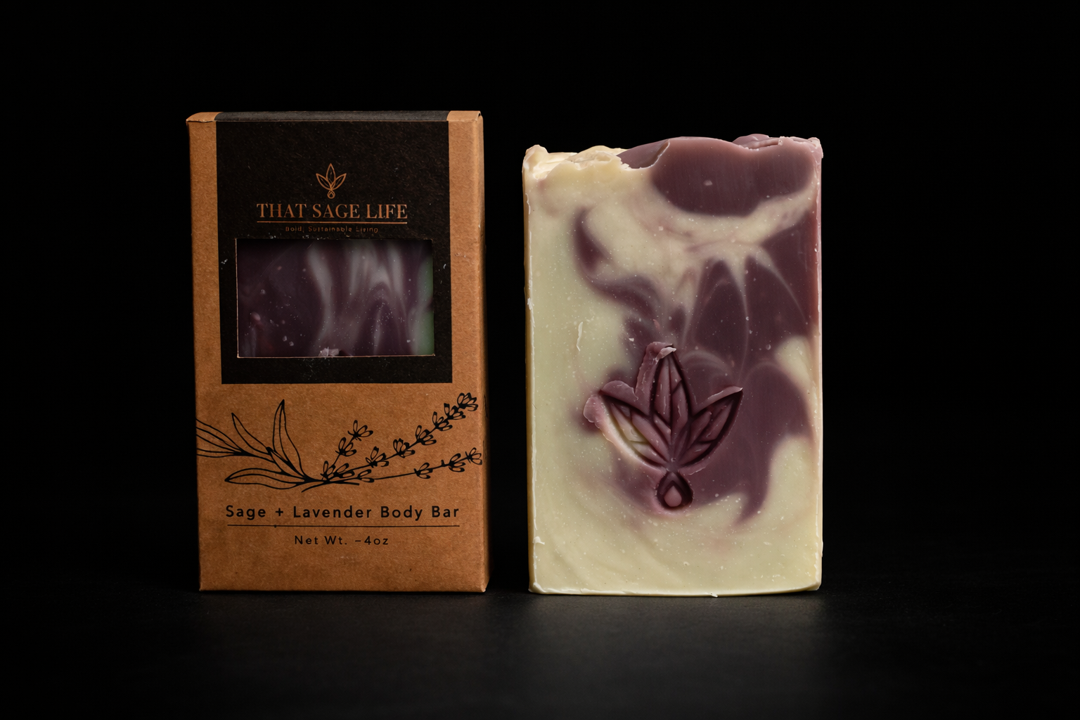 The Sage- a gentle mix of sage and lavender essential oils. Sage and lavender are commonly used to aid in calming nerves or anxiety. This all-natural soap is also naturally colored using matcha powder, french green clay, and alkanet root extract.